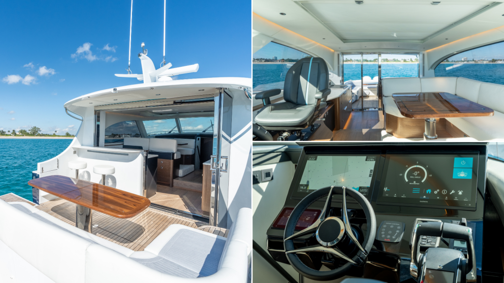 Designed with real-world ownership in mind, the layout emphasizes flow, usability, and comfort throughout. Two full staterooms, Italian walnut finishes, and an interior shaped by Silver Arrows and Design Unlimited reflect the same level of precision found in the hull and engineering. The flush-deck configuration and seamless indoor-outdoor galley connection maximize both space and livability.