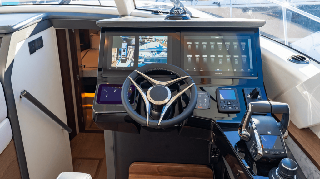 The debut of the Flag Blue 505 Shadow stood as a highlight of this year’s show — a vivid expression of ECLIPSE’s forward-thinking approach to yacht design. Built on customer feedback and real-world experience, this model represents the next evolution of the 505 platform: refined, balanced, and performance driven. Its deep, lustrous blue hull reflected the South Florida sun in a way that stopped attendees as they either disembarked in the water taxi or made their way to the southwest end of the in-water display. While subtle refinements throughout the layout underscored ECLIPSE’s reputation for listening, adapting, and improving.