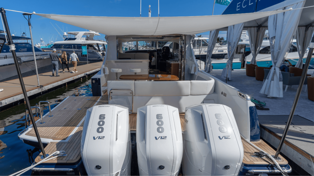Throughout the weekend, the ECLIPSE booth became a meeting point for those who share a passion for performance and precision. Owners, brokers, and captains stepped aboard, exploring the 505’s thoughtful details — from her seamless indoor-outdoor flow to her triple Mercury V12 engines that deliver an effortless combination of speed and stability.